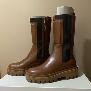 Stylish brown leather boots with a chunky sole. Perfect for a bold look.