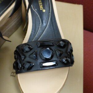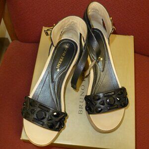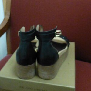 BRUNO PREMI LEATHER WEDGE HEEL SANDALS BLACK SZ 8