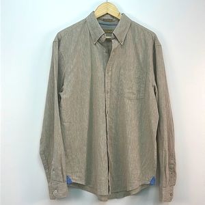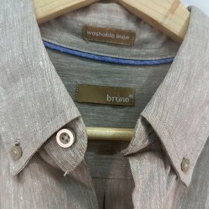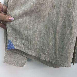 BRUNO Washable Linen Men’s Button up down Shirt Beige with Blue at Hem Sz M