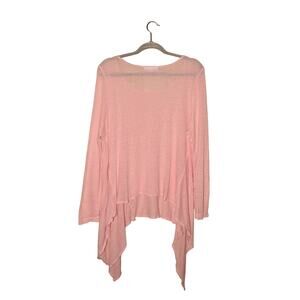 BRYN WALKER $128 Pink Sheer Lightweight Linen Asymmetric Hem Top Large