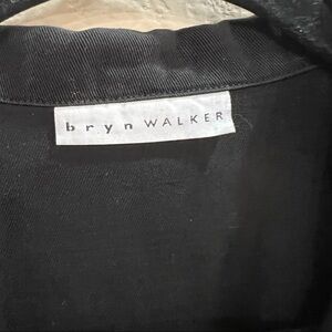 BRYN WALKER Black Tencel Button Down Collared Minimalist Lagenloook Top Sz S EUC