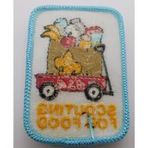 BSA Scouting For Food Patch Red Wagon Bag of Groceries Volunteer Drive 2001 New. 2.5" x 2". There are 4 . Price is per patch. Please see pictures.