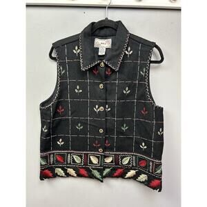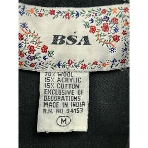 BSA Wool Vest Black Floral Button Front Womens Medium Embroidered Fall