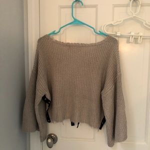 NEW WITH TAGS! Adorable grey oversized (width-wise) sweater, just a little too big for me. Slightly cropped with a very unique and cool design!! Willing to look into reasonable offers