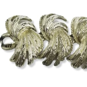 Beautiful vintage silvertoned statement bracelet by BSK. Bracelet is a panel chain style measuring 7-1/2 inches in length and 1-1/4 inches wide.  Bracelet has a fold over clasp stamped BSK. Fairly good condition, some of the silver plating is worn away in various areas of bracelet,  refer to pics for condition.
