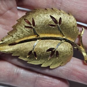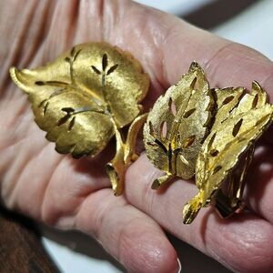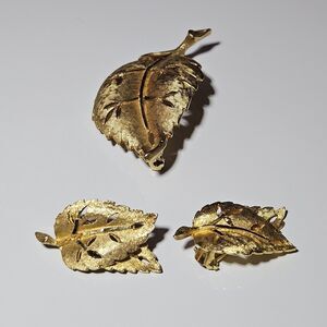 BSK Vintage Gold Plated Leaf Brooch & Clip-on Earring Set