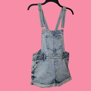 BSKGIRL BERSHKA Denim Short Bib Overalls Adjustable Straps Light Wash