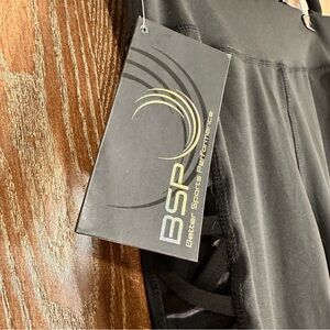 BSP Better Sport Performance NWT Women's Workout Leggings Sz XL Black Cross Thig