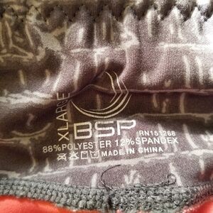 BSP coral & grey leggings 88% polyester, 12% spandex EUC Approx measurements laid flat Waist 13.5" but stretchy Rise 10" Inseam 21" GG2090