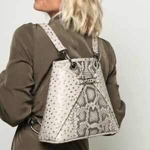 BSWANKY Sophie Python Convertible Backpack/Purse Gray with silver accents