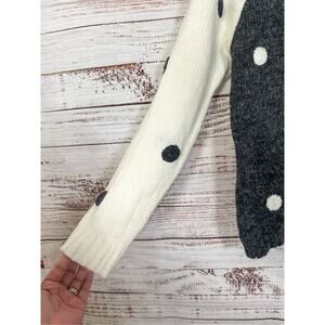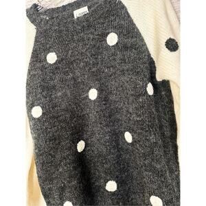 B-Sharp Women's Long-Sleeve Scoop Neck Polka Dot Mohair Blend Sweater Gray Cream Small
