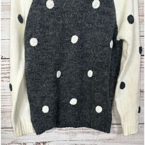 B-Sharp Women's Long-Sleeve Scoop Neck Polka Dot Sweater Gray & Cream Small