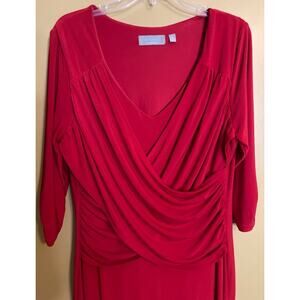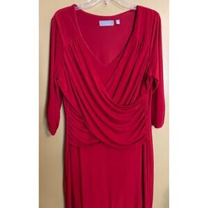 B-Slim Women's Red Body Shaping Faux Wrap Dress Plus Size 1X