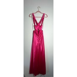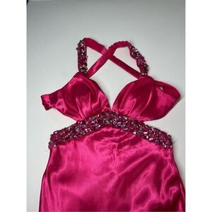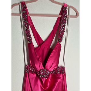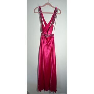 B.Smart Perfectly Classy Magenta Satin Strappy Maxi Dress Pink Rhinestone embroi