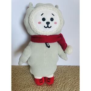 This plush toy is RJ, a character from BT21, which is part of the LINE FRIENDS collection created in collaboration with BTS. RJ is a kind and gentle alpaca who loves to wear a cozy scarf, and he is known for his warm personality and love for cooking