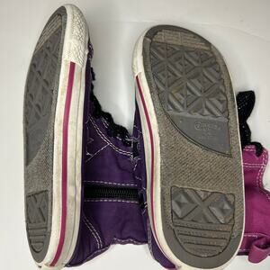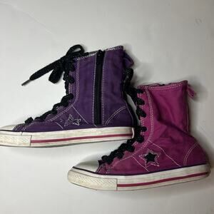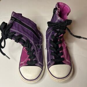 Super cute Converse high top sneakers. Zipper side, pink and purple, good used condition for normal minimal wear. Smoke free and pet friendly (non-shedding) home.