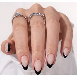 BTArtbox Black French Drop Press On Nails Almond Shape Nude Gel Look | Soft