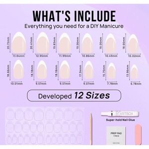 BTArtbox White French Almond Press-On Nails – Soft Gel, Reusable, Salon Look at Home