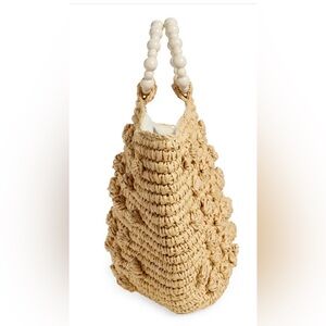 Tonal pompoms add playful charm to this roomy tote crafted from interwoven straw topped with bubbly handles. Structured silhouette with flat base for stability Lined Paper straw Imported