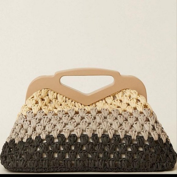 Just waiting on a sunny day! This BTB Los Angles Nadiya Ombre Clutch is a show stealer. Modern color-blocking in black, grey, and natural straw adorns this sweet summer clutch in timeless crochet and a structured frame.