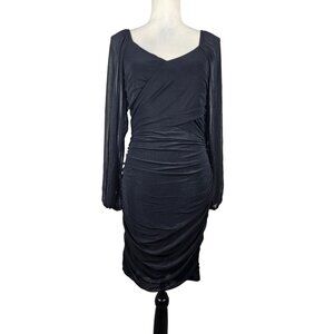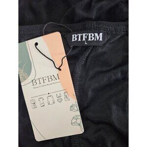 BTBFM Womens Elegant Ruched Bodycon Dress Long Puff Sleeve Black Size L Party