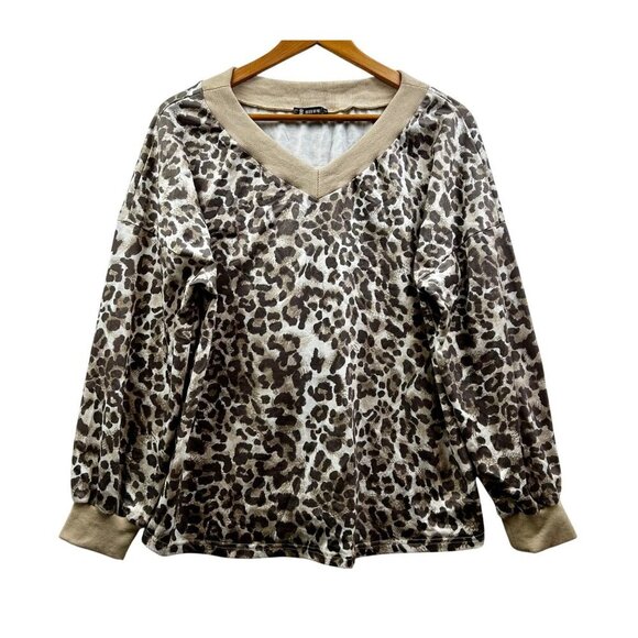 BTBFM Womens Leopard Print Long Sleeve V-Neck Casual Pullover Top Sweater large