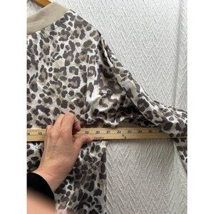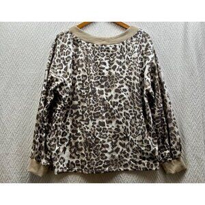 This leopard print pullover features a classic V-neck and long sleeves. Crafted from a polyester and cotton blend, it offers comfort and style.