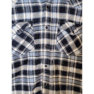 BTC Bay Trading Company Pearl Snap Heavy Flannel Shirt Blue White Plaid Size 2XL