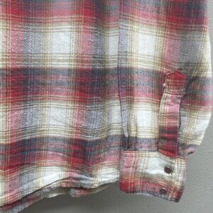 BTC Shirt Mens Large Tall Plaid Flannel Western Pearl Snap Red Gray Long Sleeve
