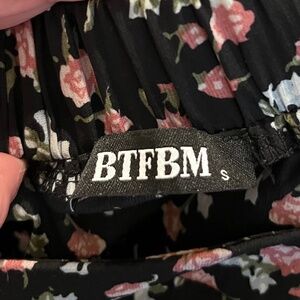BTFBM Black Floral Ruffle Side Slit Elastic Waist Midi Skirt Size S Gently Used