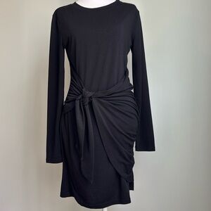 BTFBM Black Jersey dress with draped tie shawl look at waist size medium lined