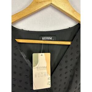 BTFBM Black Swiss Dot Vneck Ruffle Tiered Midi Dress Large