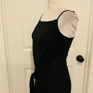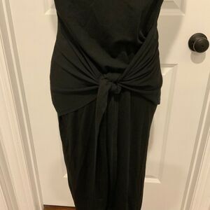 BTFBM Black Tie Front Sash Jersey Knit Sleeveless Midi Dress Large New