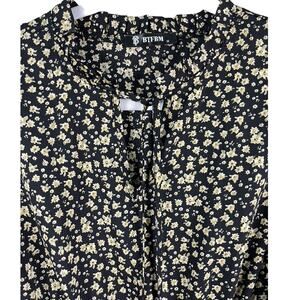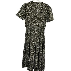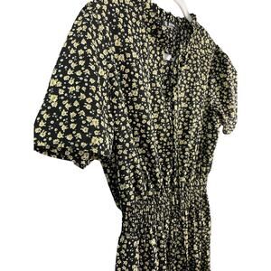 BTFBM Bohemian Black & Yellow Floral Smocked Waist Tiered Maxi Dress Size Medium