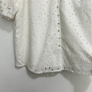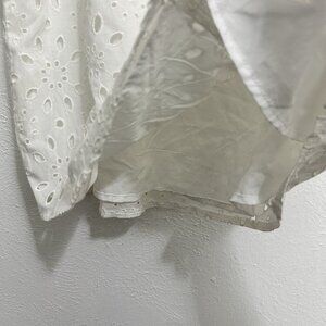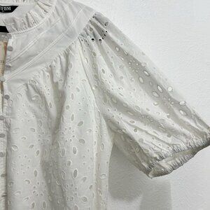 BTFBM Ivory Eyelet Embroidery Top Blouse V Neck Button Front Ruffle Neck Size XL