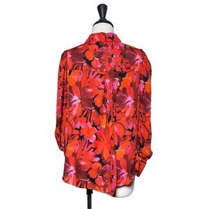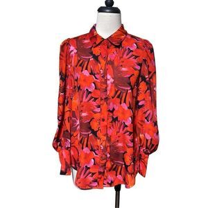 BTFBM NWT Long Sleeve Red Floral Button Up Blouse Size Small