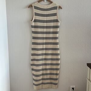 BTFBM Neutral Stripe Side Slit Midi Dress Knit Contemporary Coastal Boho Small