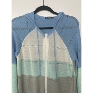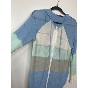 BTFBM Open Knit Sweater Hooded Cardigan Full Zip Colorblock Pastel Multicolor L