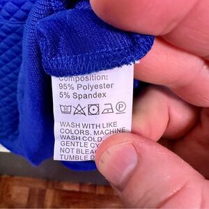 NWT quilted man-made textile blend quarter zip pullover sweater. Size L, it is a vibrant blue.