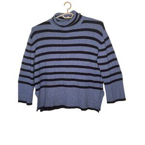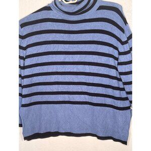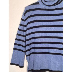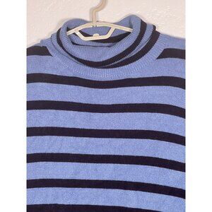 BTFBM Striped Blue & Black Ribbed Knit Turtleneck Sweater XL Warm Comfortable Oversized