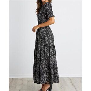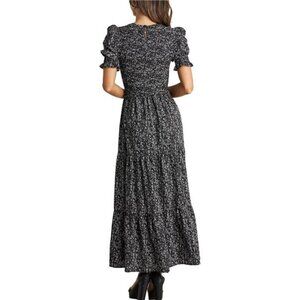 *FEATURES: S=US 4-6,M=US 8-10,L=US 12-14,XL=US 16-18 / Summer Dresses For Women 2025 / Maxi Dress For Women / Spring Dresses For Women / Boho Dress For Women / Crew Neck / Short Puff Sleeves With Elastic Ruffle Cuff / Stretchy Smocked Bodice (Smocking At Bust And Waist) / Printed / Tiered Flare A- Line / Pleated Hem / Swing And Flowy
