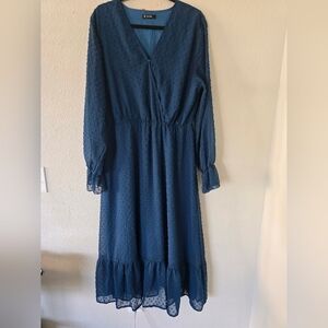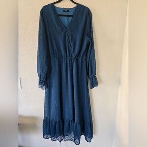 BTFBM Women Dress XL Tiered Blue Maxi V Neck Textured Feminine Cottagecore
