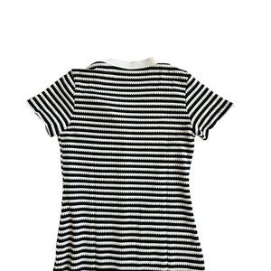 As the sun sets, casting a gentle glow, she slips into her striped midi dress. The ribbed knit hugs her form, while decorative buttons add a touch of whimsy. A perfect blend of comfort and style, this dress turns any summer evening into a memory worth cherishing.