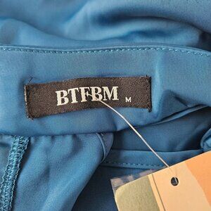 In the realm of elegant evening wear, this BTFBM dress stands as a beacon of sophistication. Its flowing fabric drapes gracefully, while the halter neckline adds a touch of timeless allure. Ideal for those moments when you wish to leave a lasting impression, its blue hue mirrors the depths of the twilight sky.