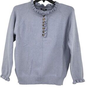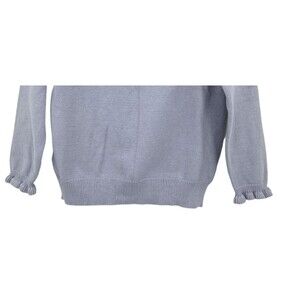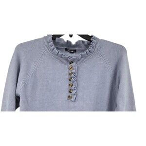 BTFBM Womens Sz M Sweater Grayish Blue Ruffle Trim Buttons Knit Pullover