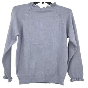 The BTFBM Women's Size M Sweater in Grayish Blue with Ruffle Trim and Buttons is a stylish pullover perfect for the colder seasons of winter, fall, and spring. Made from a blend of polyester, nylon, and viscose, this sweater features a tight-knit design and a ruffle neck for added flair. Ideal for travel, casual outings, or business meetings, this sweater offers a comfortable fit for everyday wear. The pullover style makes it easy to slip on and off, making it a versatile and practical addition to any wardrobe.