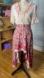 BTFBM size M, hi Lo, red and green flowered patterned skirt.