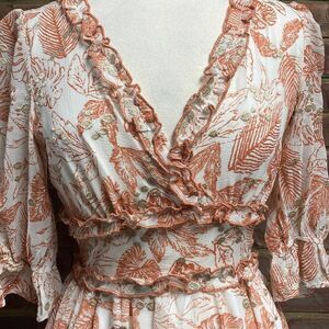 BTFL-Life Leaf Print Ruffle Puff Sleeve Maxi Dress Size XS NWT