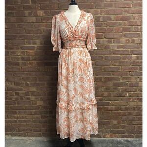 BTFL-Life Leaf Print Ruffle Puff Sleeve Maxi Dress Size XS