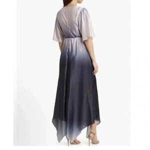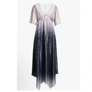 BTFL-life Karla Handkerchief Pleated Hem Pink Navy Ombré Maxi Dress V-Neck